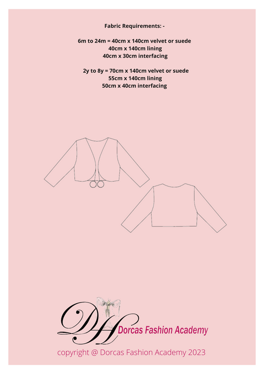 GIRLS BOLERO JACKET PDF SEWING PATTERN AND INSTRUCTIONS 3m to 24m & 2y to 8yRegular price £6.99 GBPRegular priceUnit price / per-