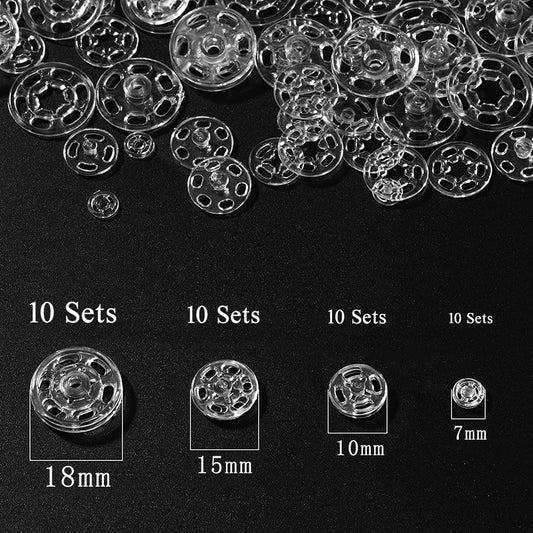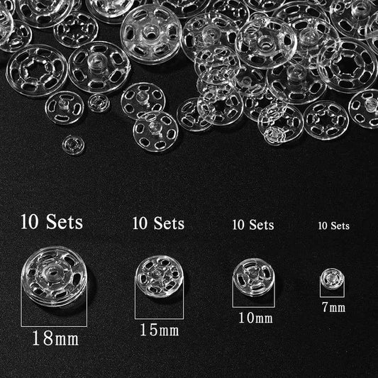 Plastic Snap Button Fasteners - Transparent Press Studs Sew-on Buttons 40 Pairs