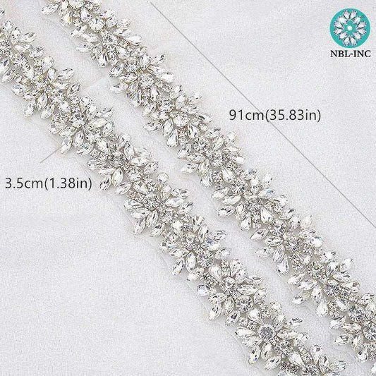 Crystal Rhinestone Applique Trim Belt - Silver Clear Bridal Beaded Embellishment
