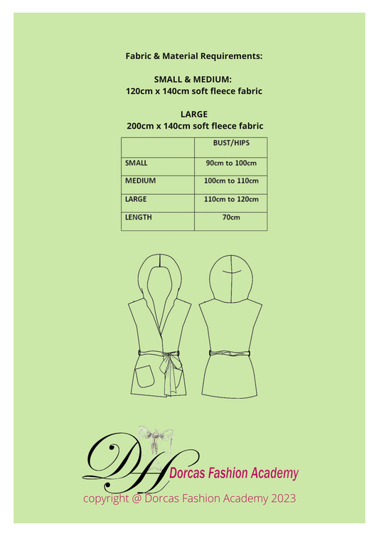 LADIES SLEEVELESS HOODIE PDF SEWING PATTERN & INSTRUCTIONS S to L