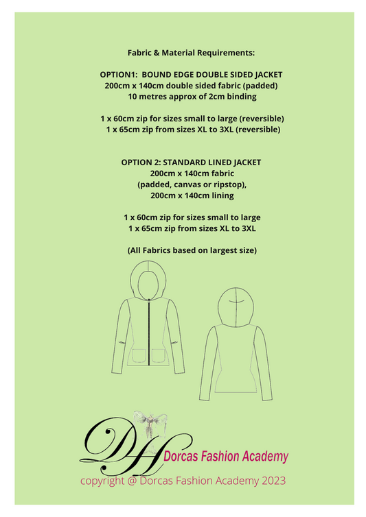 LADIES HOODED JACKET PDF SEWING PATTERN & INSTRUCTIONS S to 3XL