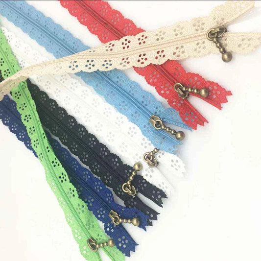 Lace Zippers 10pcs - 20cm Closed End Decorative Zips for Dresses & Garments