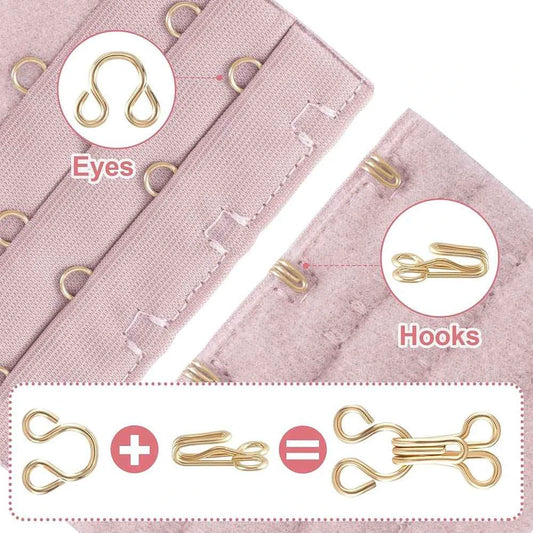 100-Pack Gold Alloy Bra Hooks and Eyes - Sew-On Closures for Lingerie & Garments