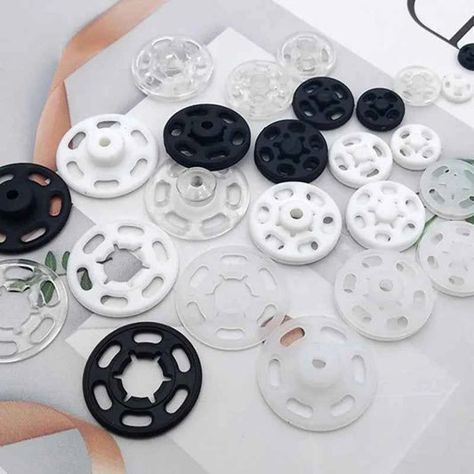 Clear Plastic Round Snap Buttons 50 sets 7-21mm Black/White