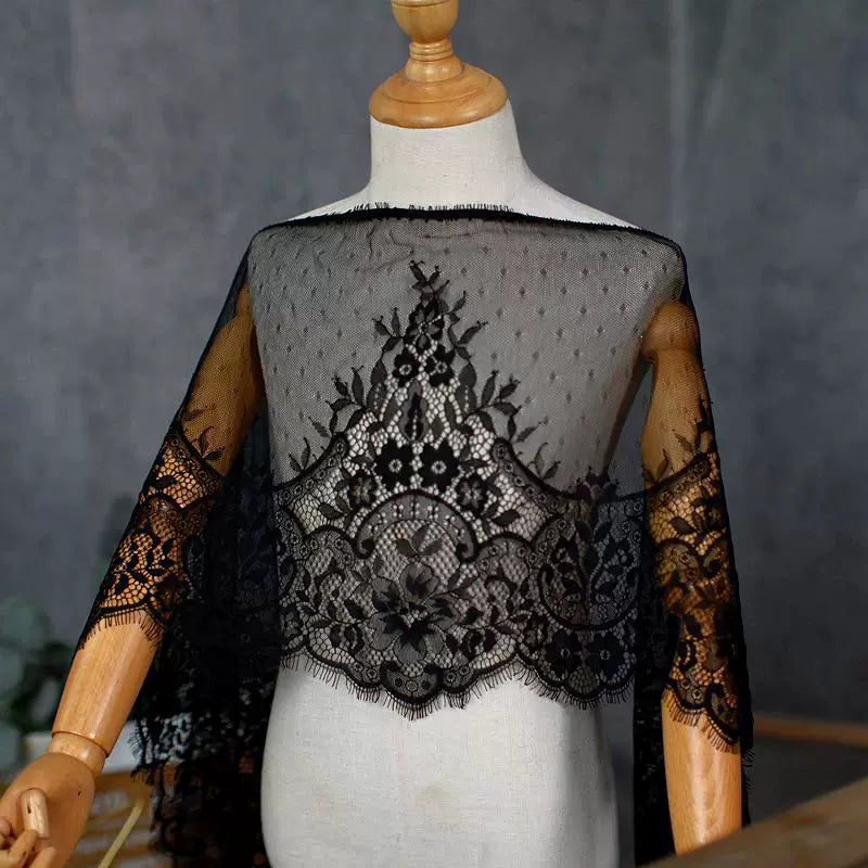 This elegant one-sided (unilateral) eyelash lace features delicate scalloped edges on one side, making it ideal for sleeve edges, skirt hems, and decorative stitching applications. The generous 30cm width provides dramatic coverage for garment edges and home textile decoration. This is non-stretch lace fabric, perfect for structured garments and decorative applications. The one-sided design allows for clean finishing on garment edges. Available in classic black and white. Essential supplies for our fashion academy's garment construction and home textile workshops.