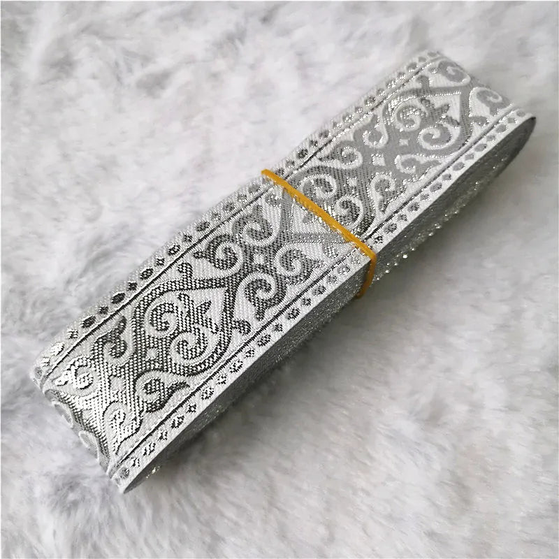 7 Meters 33mm Gold Silver Vintage Embroidery Ribbon - Metallic Boho Lace Trim for Clothing & Bags