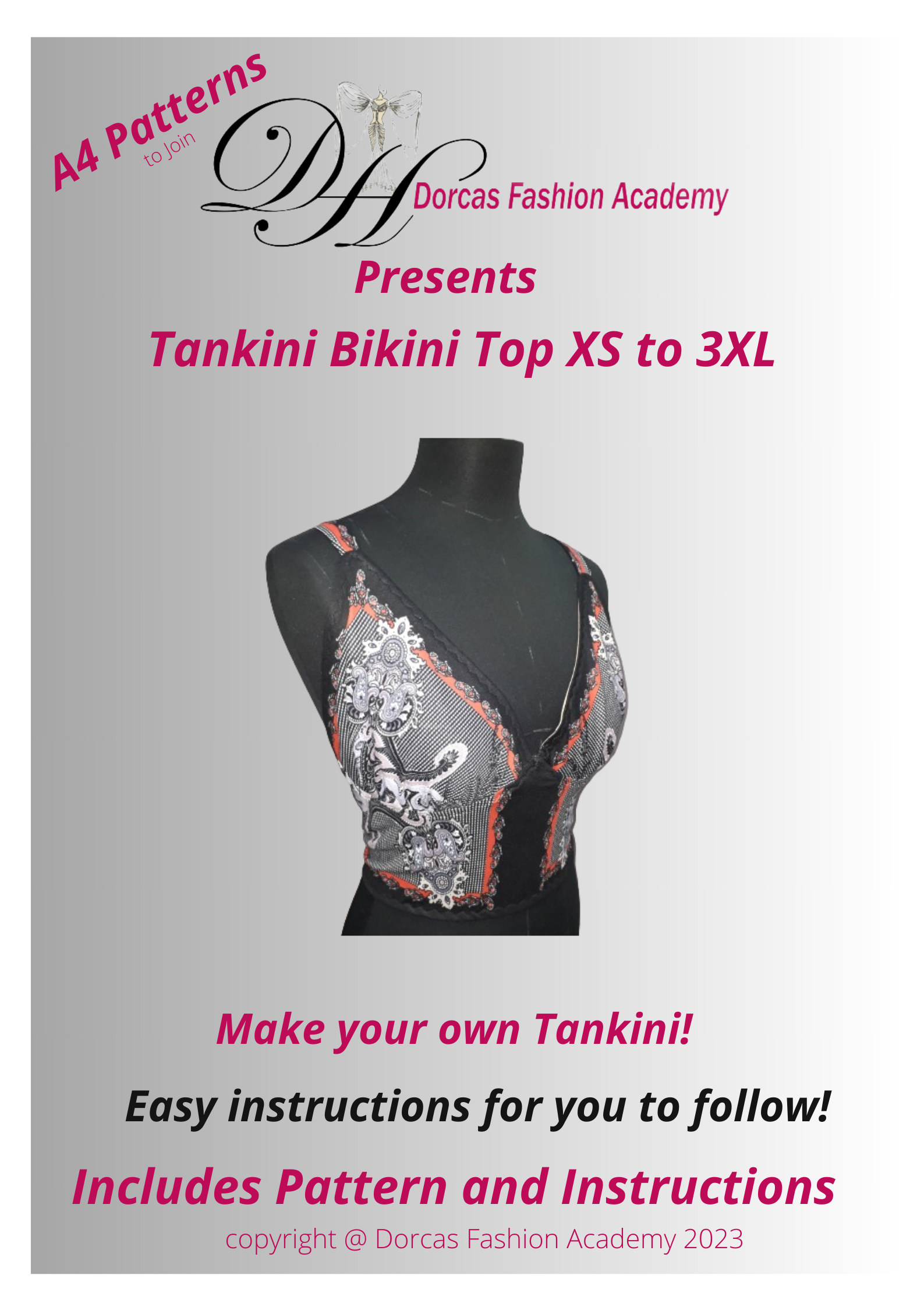 TANKINI TOP PDF SEWING PATTERN AND INSTRUCTIONS XS-3XL