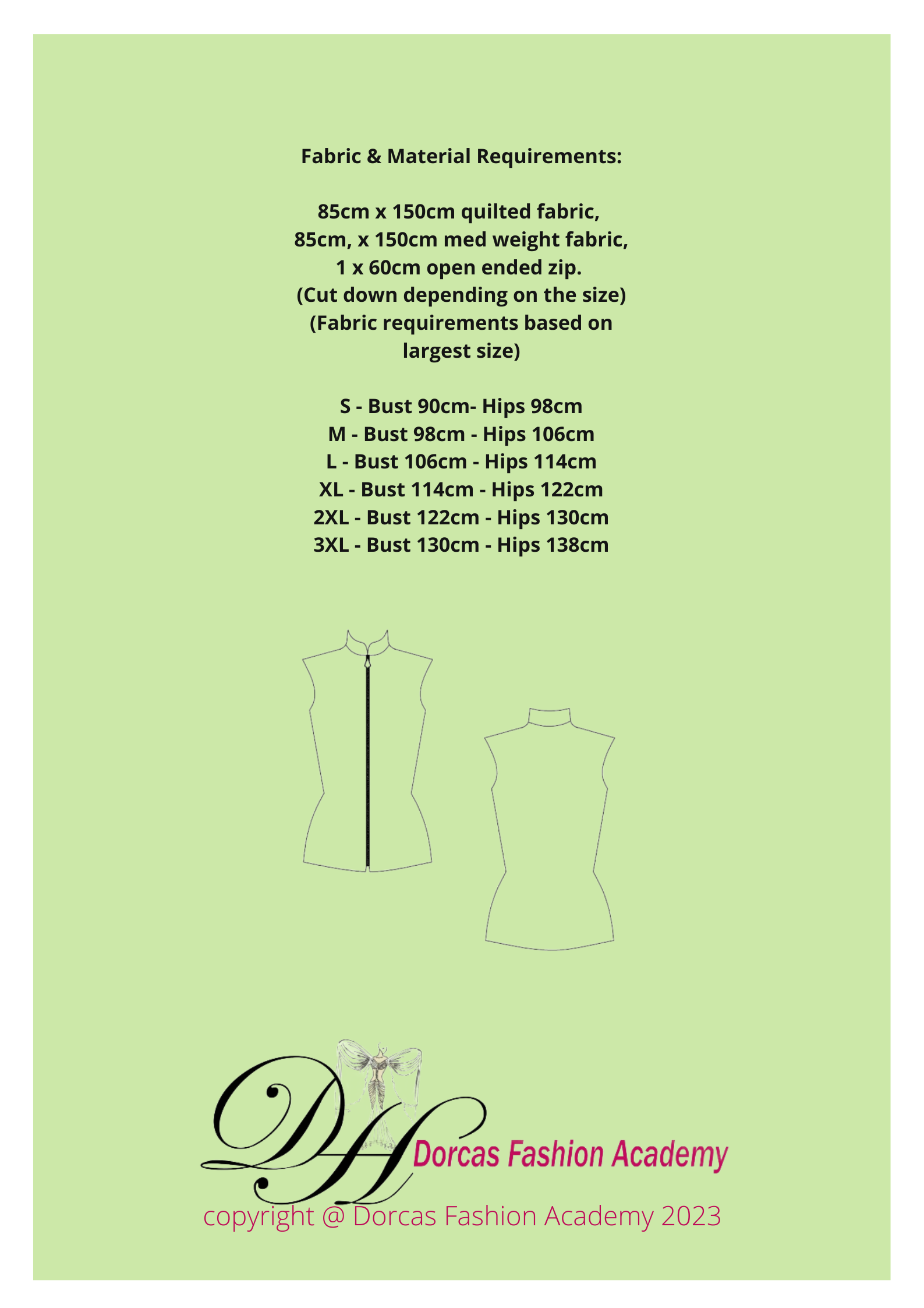 LADIES BODYWARMER PDF SEWING PATTERN & INSTRUCTIONS. S to 3XL