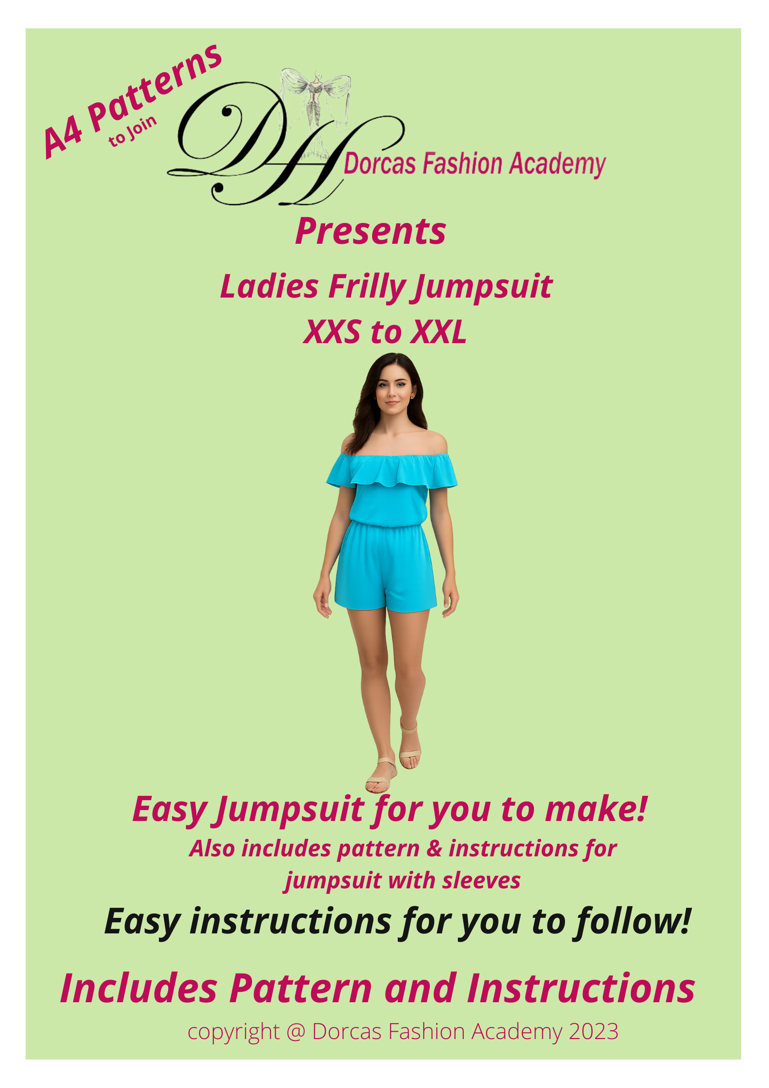 Ladies Frilly Jumpsuit PDF Sewing Pattern & Instructions - XXS-XXL