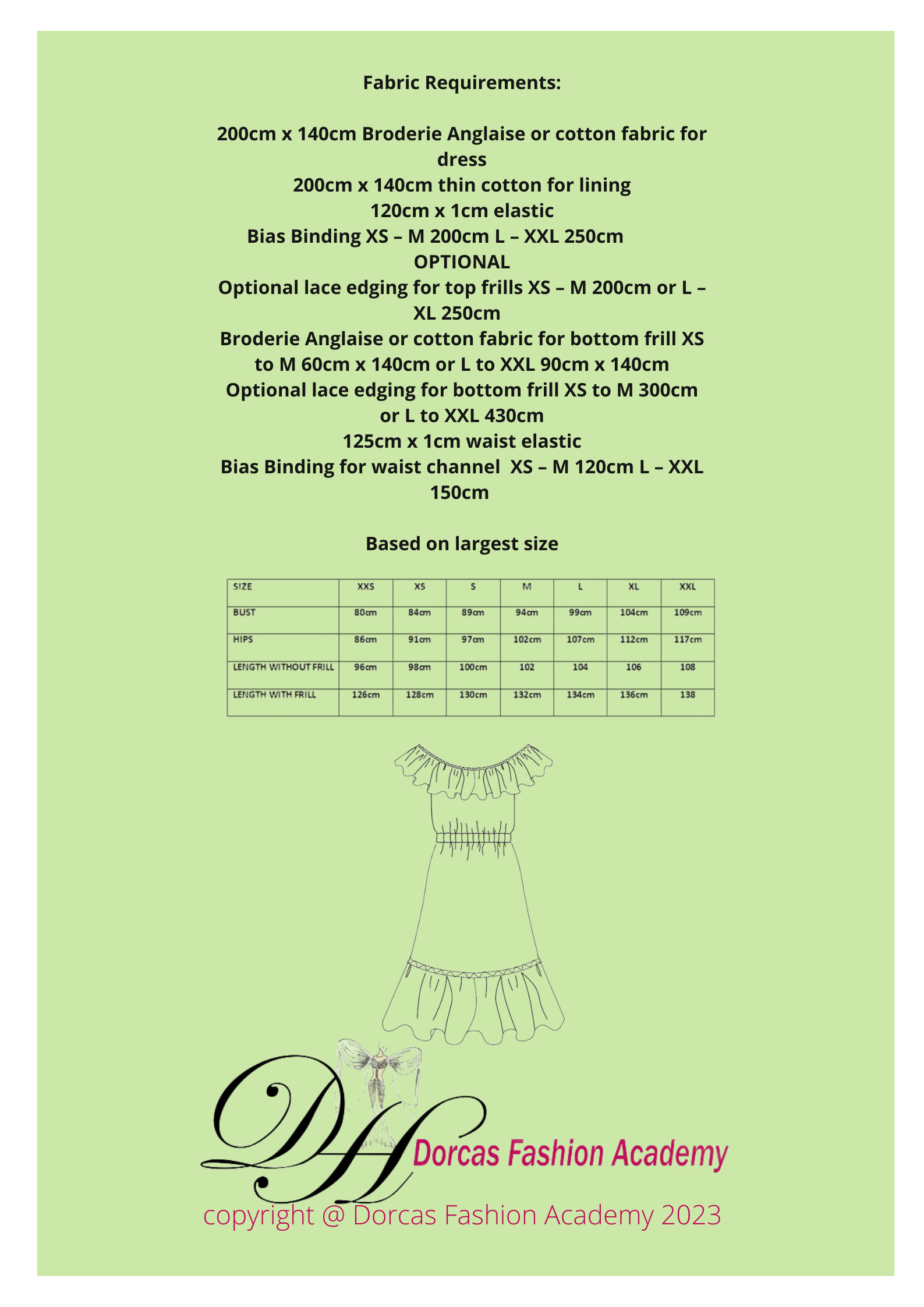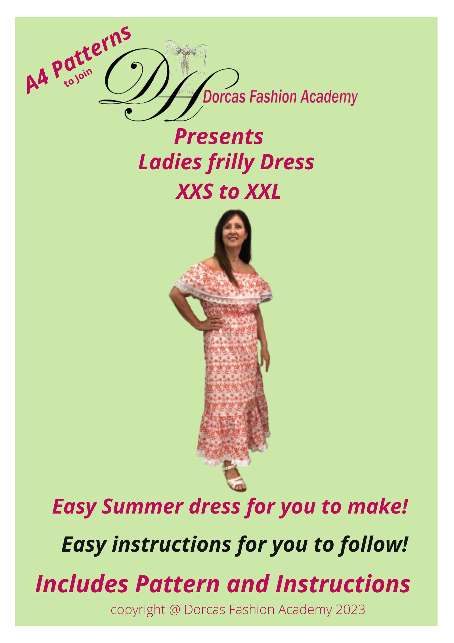 LADIES FRILLY DRESS SEWING PATTERN & INSTRUCTIONS XXS TO XL