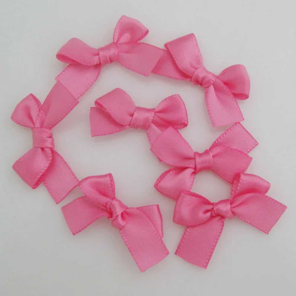 Satin Ribbon Bows: 3/8" (2cm to 3cm) in size, ideal for apparel decor. Set of 50 bows, each measuring 30x20mm. Perfect for crafting and enhancing garments with elegant accessories. Available in 25 colors, featuring satin ribbons.